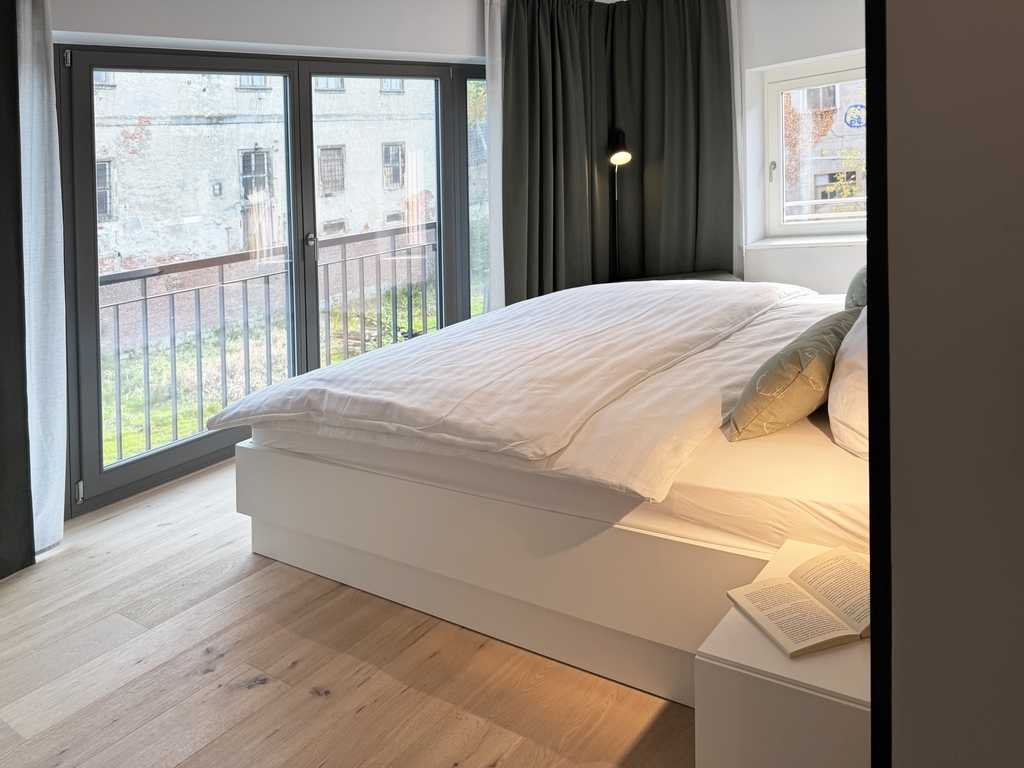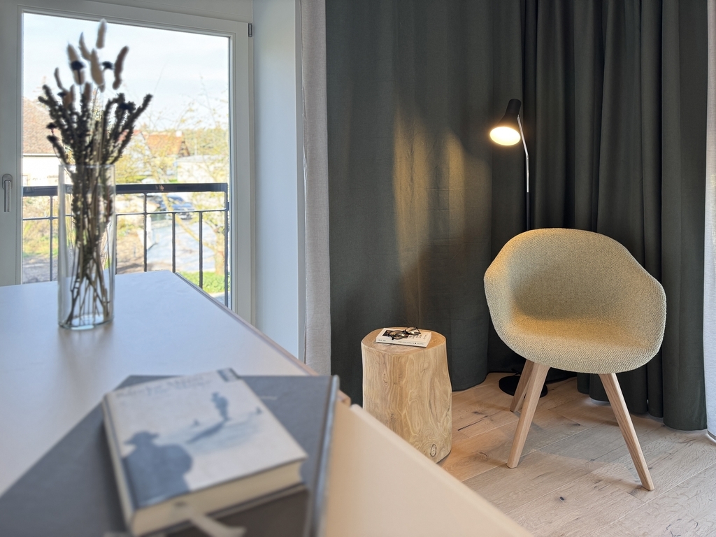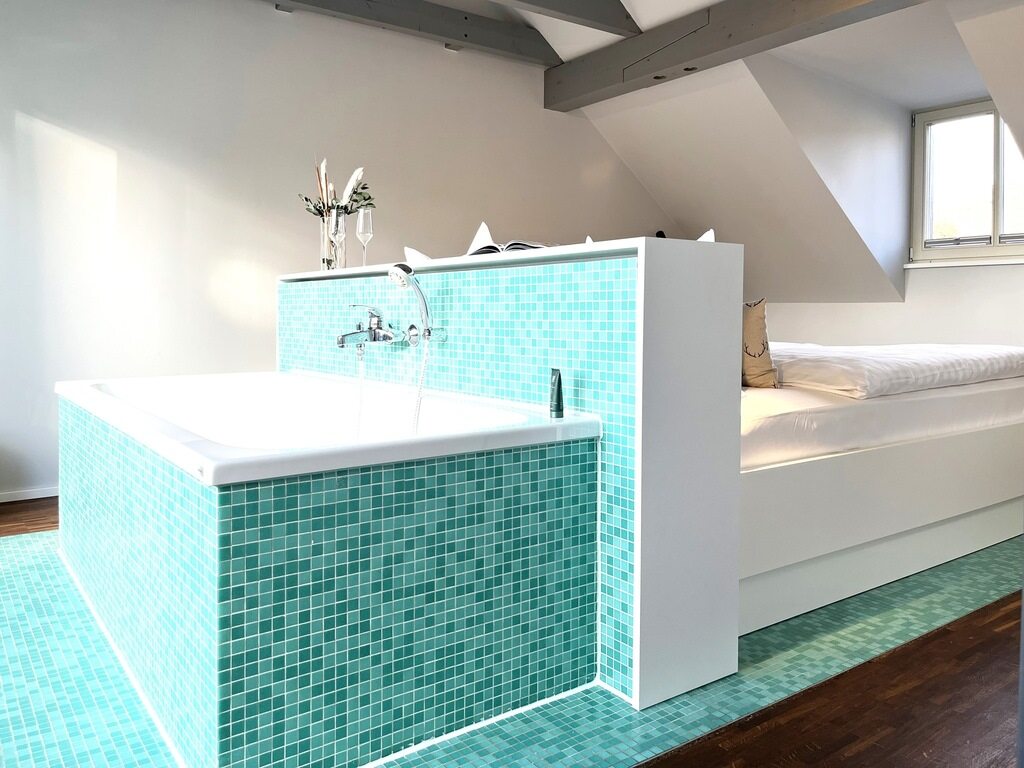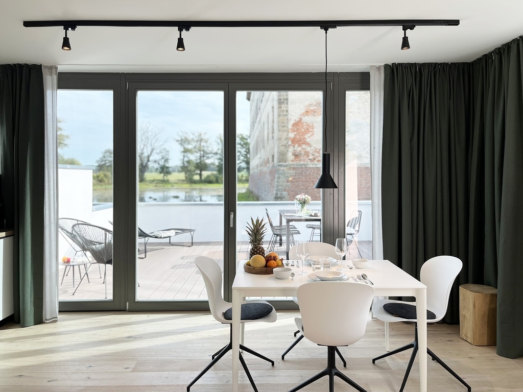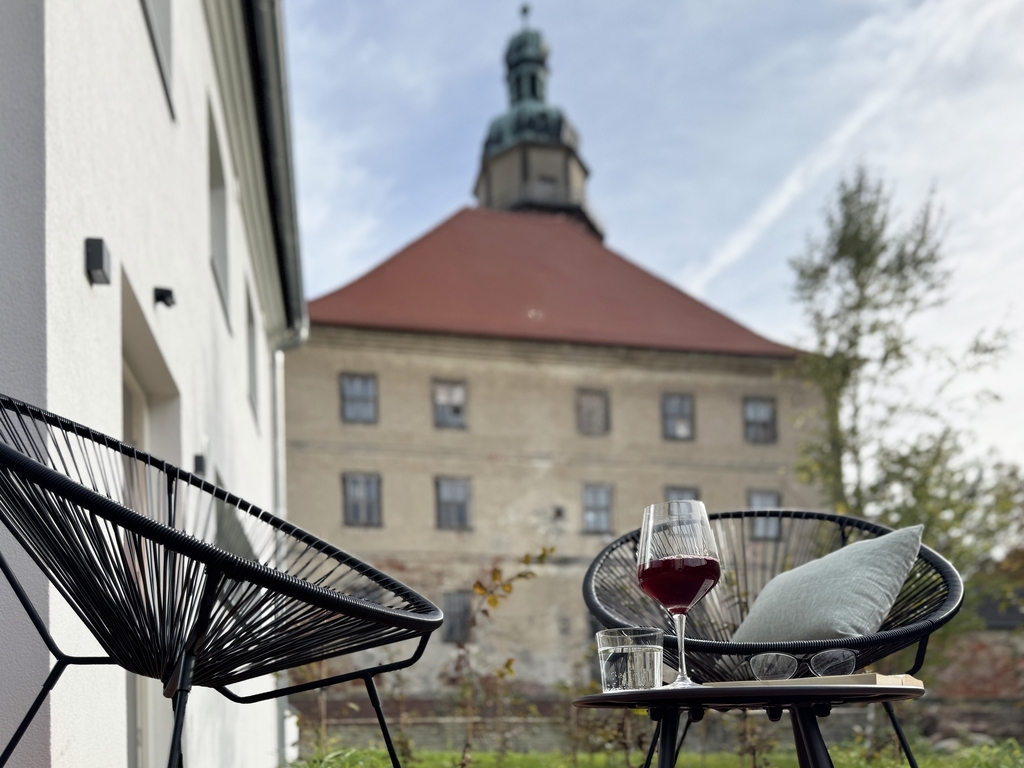 Direkt am Schlossteich gelegen haben wir eines der ehemaligen Wirtschaftsgebäude denkmalgerecht saniert und fünf individuelle Apartments für Euch geschaffen.