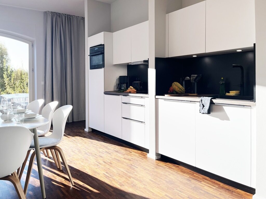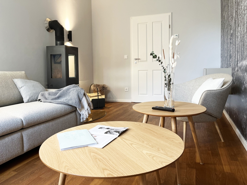 Jede Wohnung folgt einer eigenen Stilrichtung und ist mit einer privaten Sauna und einem Kaminofen ausgestattet, damit Ihr Euren Urlaub bei uns so richtig genießen könnt.