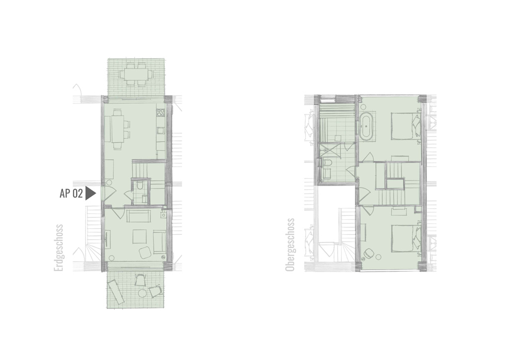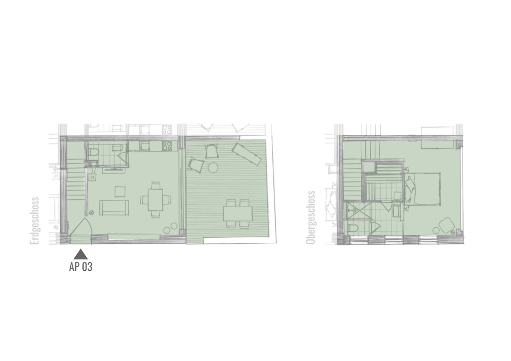 70m² | Maisonette | Wohn-/Koch-/Essbereich | 1 Schlafzimmer | 1 Zustellbett im Schlafzimmer | 1 Bad en Suite mit Dusche | 2 sep. WC |