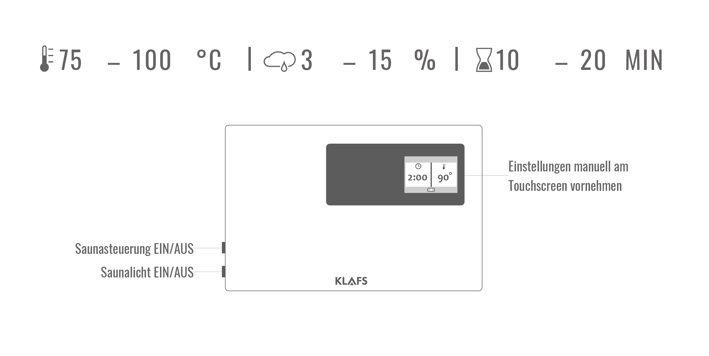 - Saunasteuerung einschalten (seitlich links am Bedienelement):